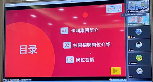 伊利集团分公司分别就校招岗位情况做介绍并现场线上收取简历。