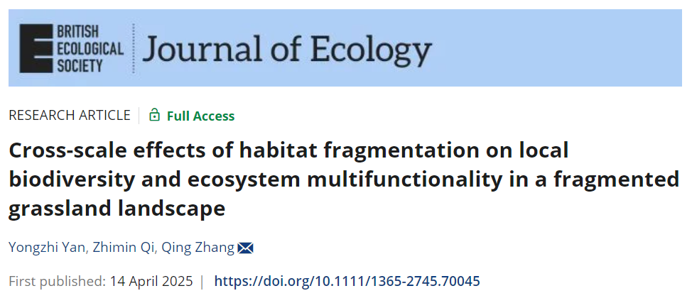 近日,yl6809永利官网集团张庆教授团队在生境破碎化对草地生物多样性和生态系统功能影响方面取得了最新进展。研究成果以“Cross-scale effects of habitat fragmentation on local biodiversity and ecosystem multifunctionality in a fragmented grassland landscape”为题发表于生态学经典学术期刊《Journal of Ecology》。