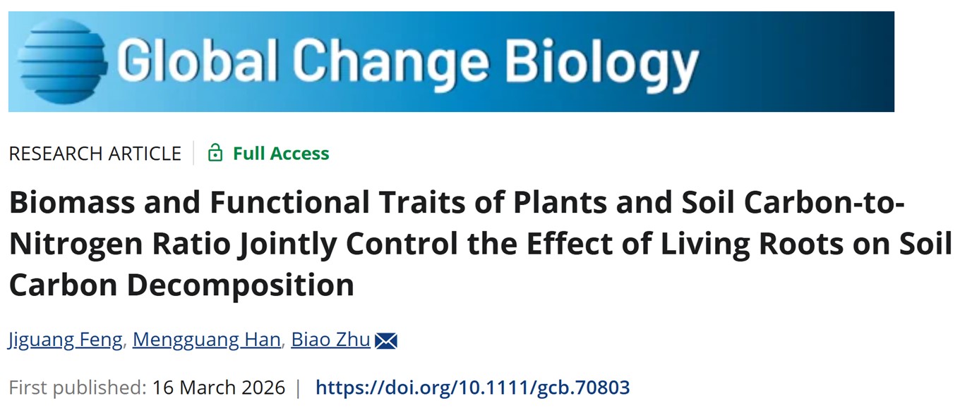 近日,yl6809永利官网集团冯继广研究员和朱彪特聘教授在根际激发效应的全球格局与驱动机制方面取得重要进展,相关成果以“Biomass and functional traits of plants and soil carbon‐to‐nitrogen ratio jointly control the effect of living roots on soil carbon decomposition”为题发表于Global Change Biology期刊上。冯继广研究员为论文第一作者,朱彪特聘教授为通讯作者,东北林业大学韩孟光教授为论文合作作者。