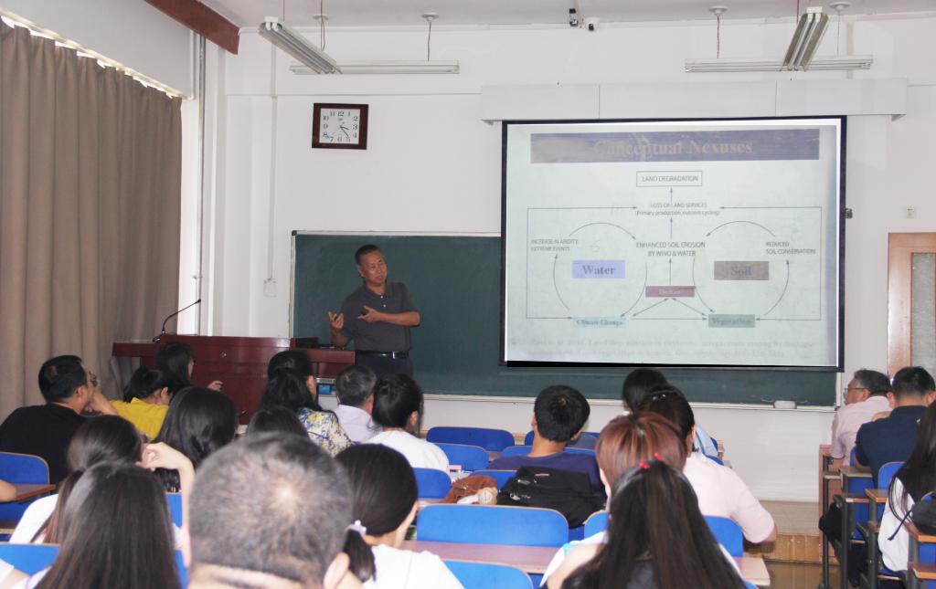 5月25日下午15:00-17:00王喜喜教授在yl6809永利集团综合楼0411作了题为“Water-Soil-Vegetation Nexus and Equilibrium in Changing Climate”的报告,详细阐述了气候变化与人类活动对水资源的影响,并就如何做科研、提出科研问题、解决科研问题等与yl6809永利官网集团的师生进行了广泛深入交流,探讨了将来进一步与美国欧道明大学(Old Dominion University)加强合作。