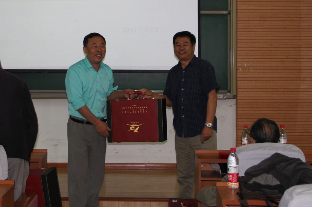 论坛召开前,由李永宏院长为内蒙古自治区发展做出长期贡献的老专家转赠内蒙古自治区成立70周年大庆纪念品。我院刘钟龄教授、杨持教授、何江教授和李笑春教授等四位教授获赠纪念品,李永宏院长向四位专家转达了自治区政府对老专家的感谢,李笑春教授代表专家们进行了讲话。