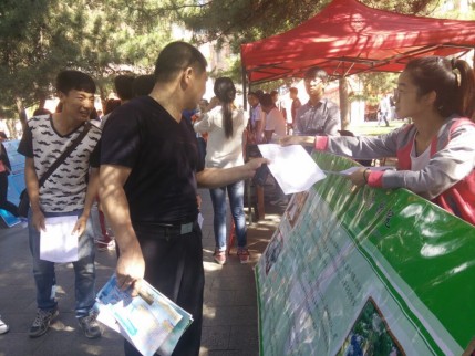 2015年6月14日上午,为了响应“校园开放日”活动,环境与资源学院团总支、学生会在综合楼门前宣传介绍了环境与资源学院的相关情况简介。