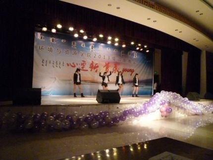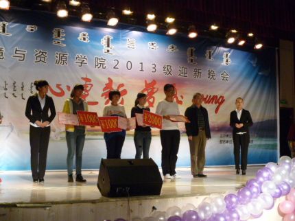 2013年10月13日晚上7点,环境与资源学院在东区活动中心举办“心连新,梦飞young”2013级迎新晚会。