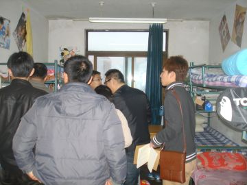2012年3月20日傍晚,环境与资源学院党总支书记李笑春、团总支书记吕昌伟、团总支副书记王治轶,以及于景丽、王维、刘崎峰、许继飞等老师带领部分学生干部来到本区学生公寓,对我院2010级、2011级各班学生的宿舍进行视察,重点检查了我院学生宿舍的安全和卫生情况。宿舍情况总体良好。