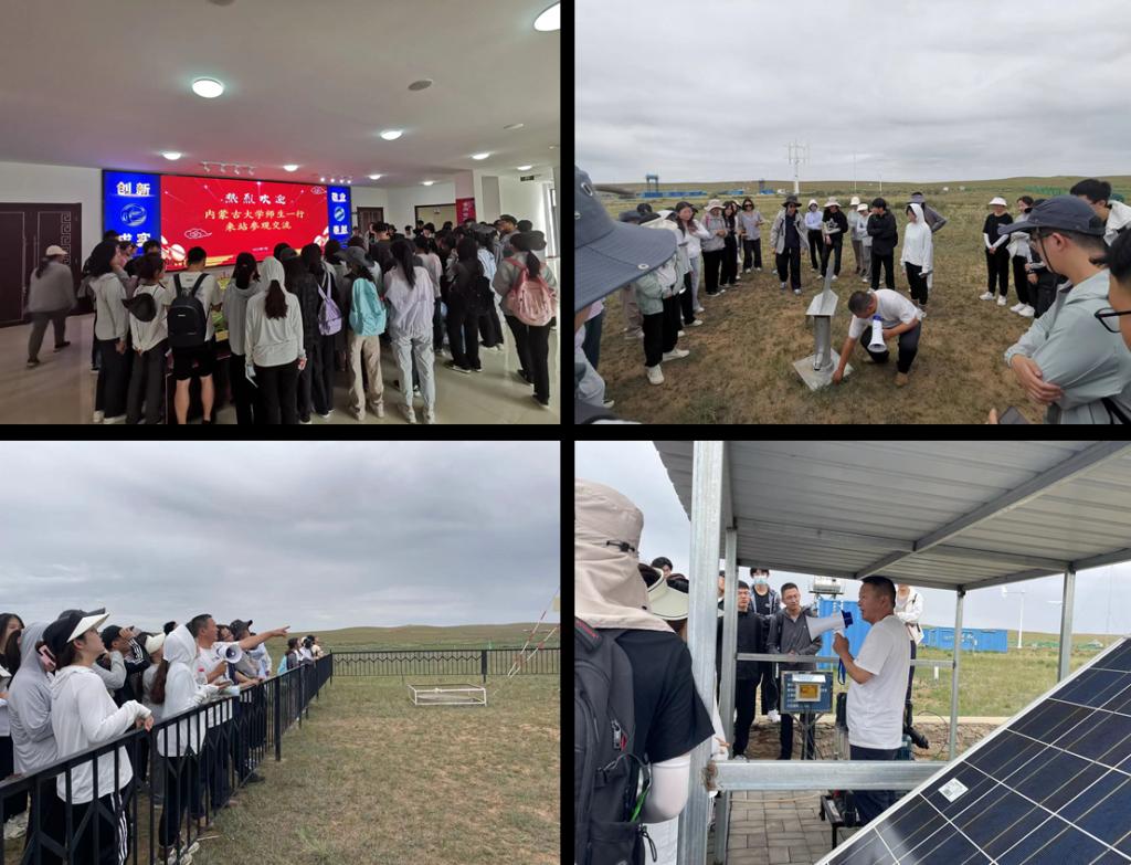 2023年7月10日,学生们来到了实习的第一站—阴山北麓草原生态水文国家野外科学观测研究站,它位于达尔罕茂明安联合旗,是包头市第一个国家级野外科研观测研究站。水利部牧区水利永利集团所高级工程师高天明老师为学生们进行了生动风趣的讲解,带领师生一行参观了水肥一体化滴灌设备、风洞仪、土壤蒸渗仪等设备,并进行现场教学,指导学生们分辨希拉穆仁草原上的不同植物物种。