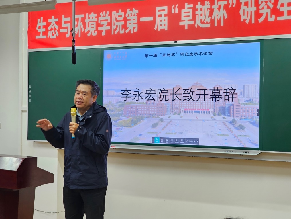 论坛开幕式由李永宏院长进行致辞,鼓励各位同学积极发挥、展示风采;李笑春书记做题为《以生态优先绿色发展为导向,推动内蒙古高质量发展,奋力书写中国式现代化内蒙古新篇章》的报告,本届研究生学术论坛正式拉开序幕。