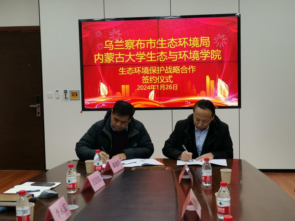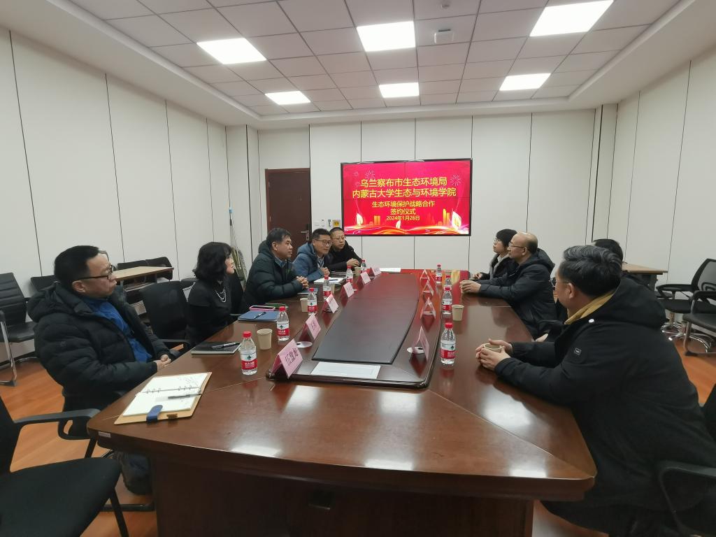 2024年1月26日,乌兰察布市生态环境局梁志华局长、赵锁军副局长、陈炫副局长、张国辉一行来我院考察交流,并签订合作协议。