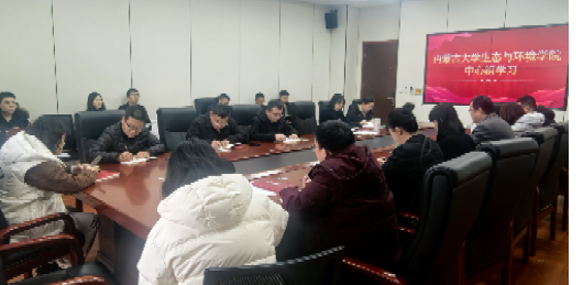 2024年12月19日下午,生态与环境学院党委理论学习中心组在学院楼306会议室召开2024年度第十次集体学习会。会议主题围绕“守正创新”展开,学院党委副书记(主持工作)王锋正主持会议,学院党委理论学习中心组成员参加会议。