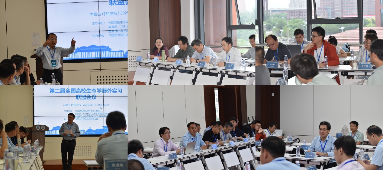 随着习近平总书记“绿水青山就是金山银山”理念的深入人心,生态学在支撑国家生态文明建设中的理论基础作用得到显著提升。为进一步提高我国高校生态学野外实习课程质量与教学效果,全国高校生态学野外实习联盟、教育部“101计划”生态学课程虚拟教研室、教育部生态学课程野外实习虚拟教研室和yl6809永利官网集团于2025年6月14-15日在内蒙古呼和浩特市组织召开了“第二届全国高校生态学野外实习联盟会议”。来自全国24所高校的生态学及相关专业院系负责人和专业骨干教师共计40多人参加了会议。