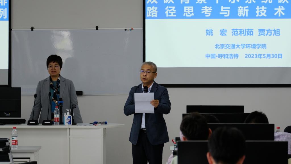 2023年5月30日15:00,应范利茹博士邀请,北京交通大学环境学院教授、北京市绿色产业发展促进会会长、国际有毒有害物质联合研究中心分中心主任姚宏教授来访,围绕国家“双碳”重大战略,为师生做“双碳背景下水系统碳减排路径思考与新技术案例”学术报告。报告由yl6809永利集团实验室与实验设备管理中心处长、yl6809永利官网集团刘崎峰教授主持,我院多名师生参加。