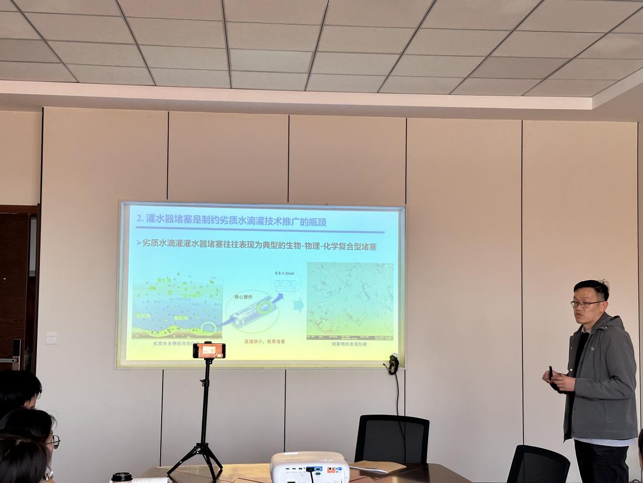 2023年11月1日下午,我院环境科学系讲师刘泽元博士进行了“水磁化技术调控滴灌系统堵塞和作物生长的微生物分子生态学机理”的学术报告。滴灌系统灌水器堵塞是制约高效节水灌溉技术应用和推广的核心难题之一,加酸氯等传统控堵方法往往控堵效果不佳,且极易对土壤微生物环境产生负面影响。磁化技术集阻垢、杀菌、灭藻等功能于一体,在环保和降低生产投资成本等方面具有加酸氯等灌水器堵塞控制方法不可比拟的优势。此外,磁处理技术在促进种子萌发、改良土壤,以及提高作物产量和品质等方面已有初步的验证。因此,磁化处理有望成为协同实现灌水器控堵和作物增产的绿色高效应用技术。该报告内容从微生物生态学角度入手,揭示了磁化对灌水器内部堵塞物质及棉花根际土壤微生物群落组成、多样性、功能及微生物间互作关系的影响。报告结束后,刘老师与在场师生就作物生理生长指标与磁化水灌溉的响应关系进行了深入交流和探讨。